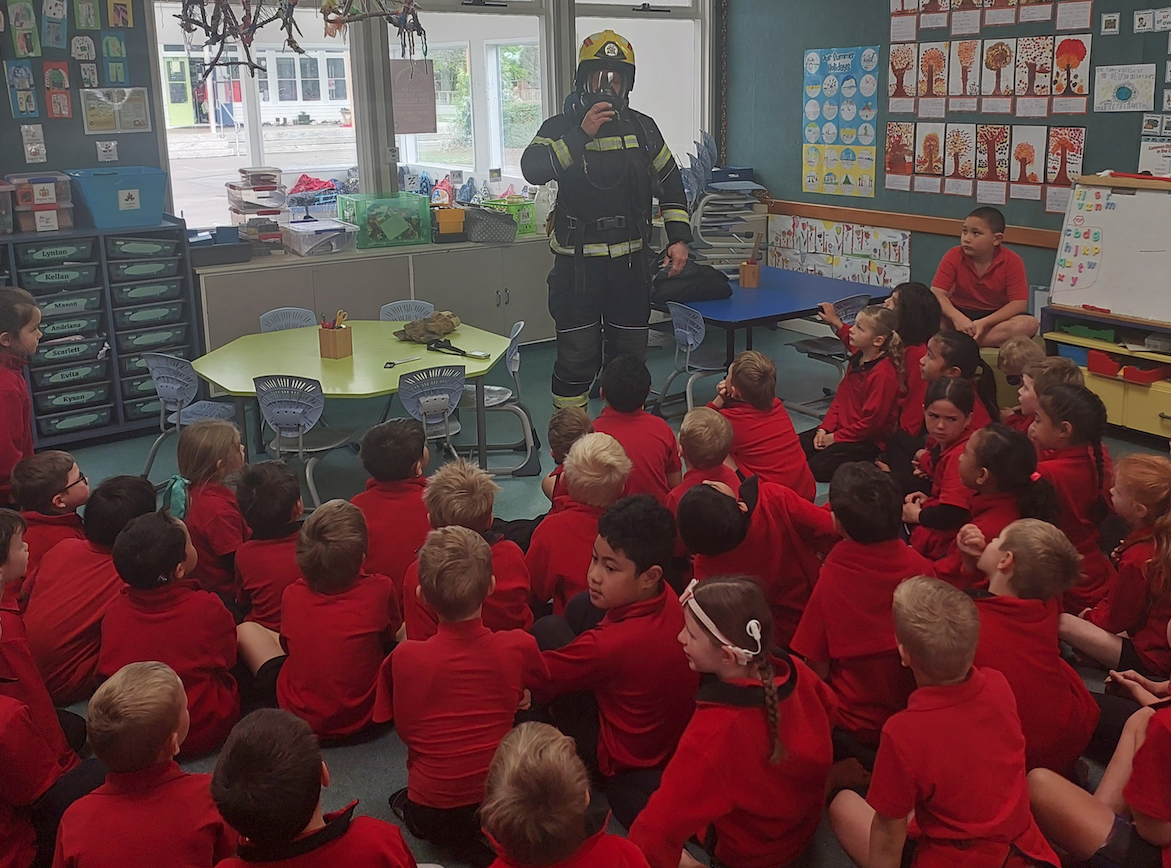 As part of Pou Tahu’s firewise programme we were lucky to have Braden Hammond come in to talk to us about his job and what is involved. He was impressed with the amount of safety knowledge we already knew about being safe around fires. A highlight for our tamariki was being able to see him as he showed us what his uniform involves and how he breathes with his helmet on!